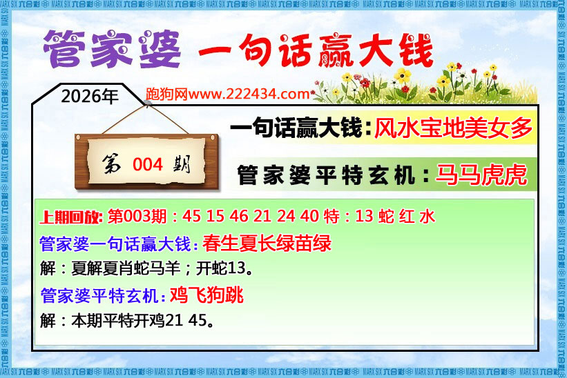 004期:【管家婆一句话赢大钱】【跑狗玄机30码必中】 跑狗出版社 『跑狗论坛:www.444024.Com