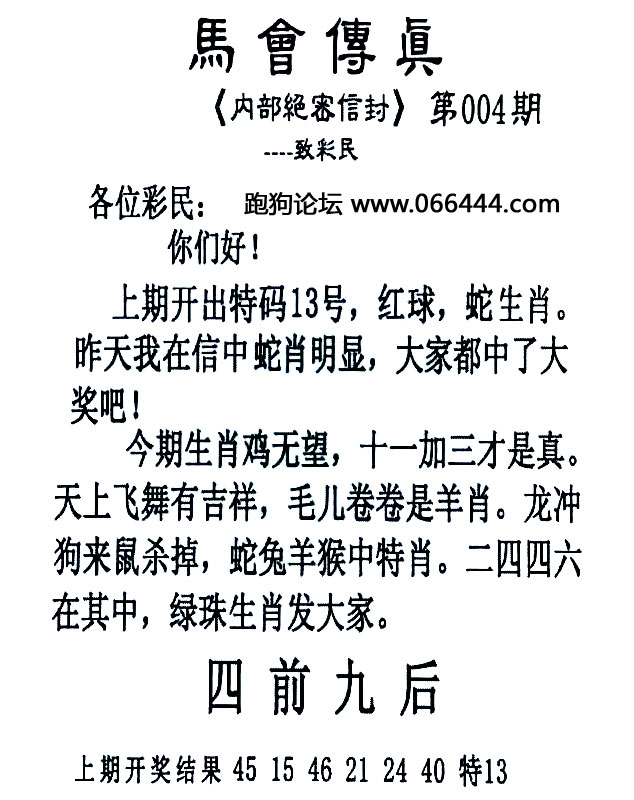 004期:必中六肖 |