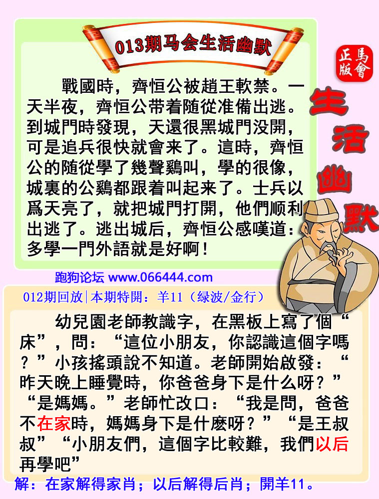 013期:【广州传真诗】【金多宝傳眞】【丫丫幽默】【馬會幽默】 跑狗出版社