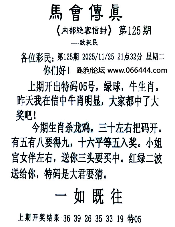 125期:{跑狗论坛}平特一尾<05-15-25-35-45>长期跟踪,稳赚不赔! |